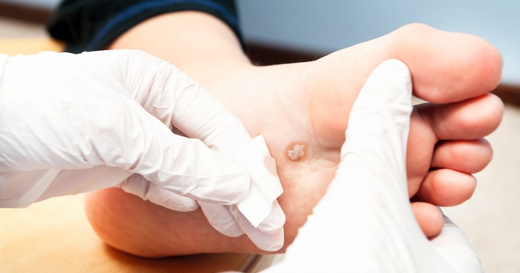 Warzen in der podologischen Praxis sind wahrlich keine Seltenheit. Zugrunde liegt eine von Papilloma-Viren (HPV) verursachte Infektion. Warzen sind sehr ansteckend, die Viren vermehren sich in der Oberhaut. Es bedarf also nicht zwingend einer blutenden Verletzung, um sich anzustecken. An den Füßen finden wir meist Verruca vulgaris bzw. Verruca plantaris.